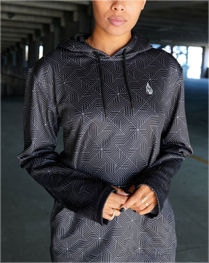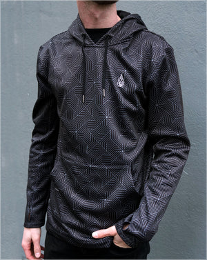 The first release of the our new midweight pullover hoodie, using special double sided fleece and satin polyester. This midweight and highly detailed garment features original artwork by Threyda.  Our silky smooth satin pullover features print mirrored on front and back.