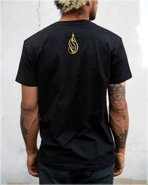 Printed with gold and silver ink! Our custom designed tees are constructed with 95% cotton and 5% spandex resulting in an amazing amount of color and detail while retaining a very soft and comfortable feel. Artwork print is screen-printed with logo on back.