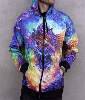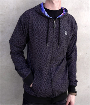 New midweight cotton shell with screenprint graphics and silky satin liner art, featuring original art by Seth McMahon and Ian Hubbard! This super detailed zip up hoodie is fully reversible - featuring a midweight cotton shell perfect for spring weather. Improved fabrics, details and utility.