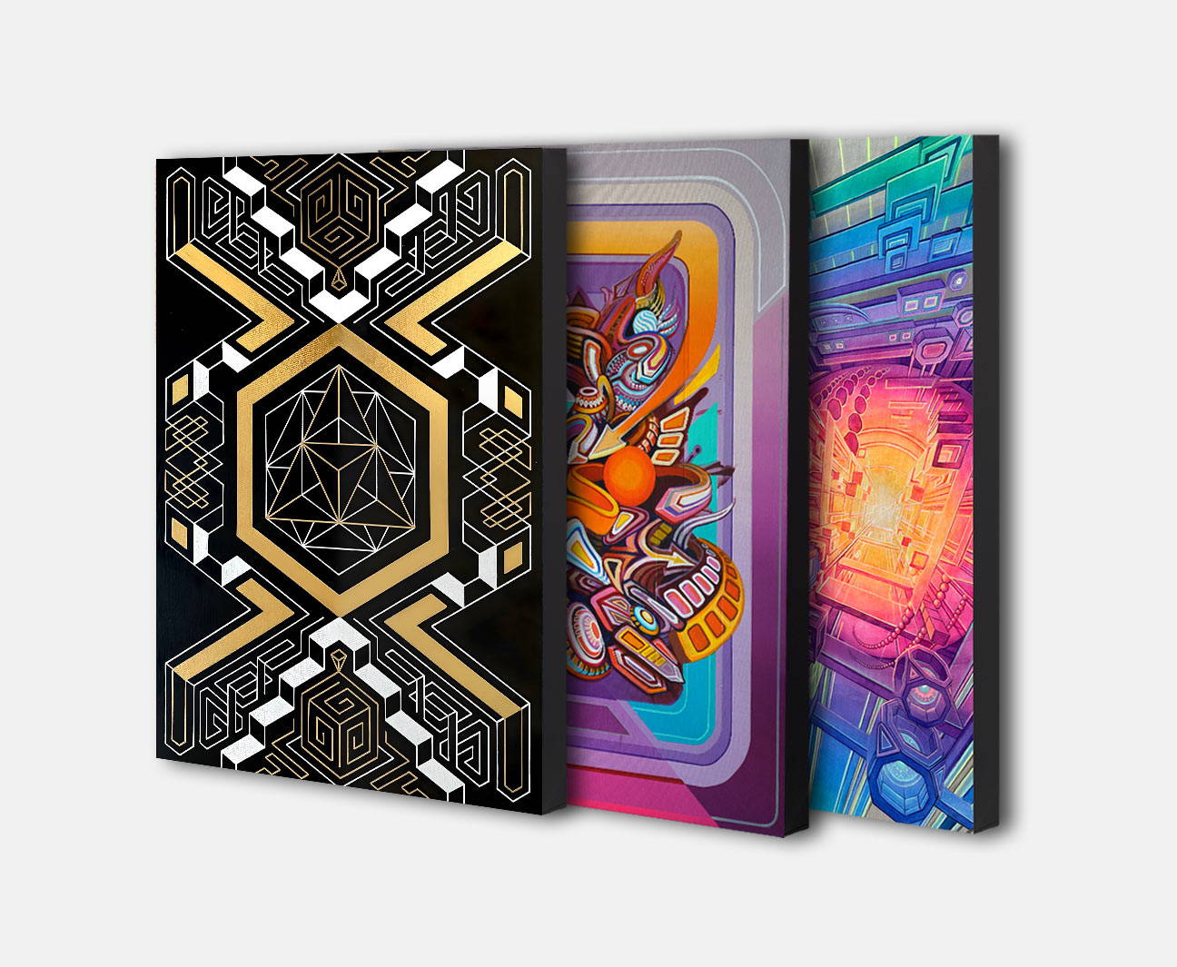 Our custom made laser cut prints are done with unique multilayered panels and hand painted details to create unique shapes and effects you won't find anywhere else. They are ready to hang and come with a protective UV layer over the art.