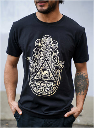 Hamsa Hand Gold Screenprint Tee by John Speaker