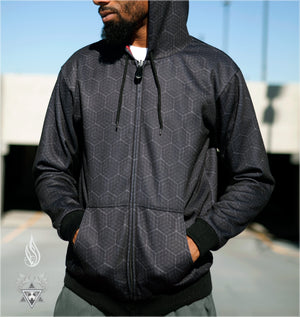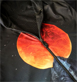 Our very first heavyweight satin reversible hoodie featuring original artwork by Android Jones x Decah One. This comfortable and smooth garment is fully reversible and super warm - featuring two different types of satin polyester and two intricate designs that line up perfectly throughout the piece.